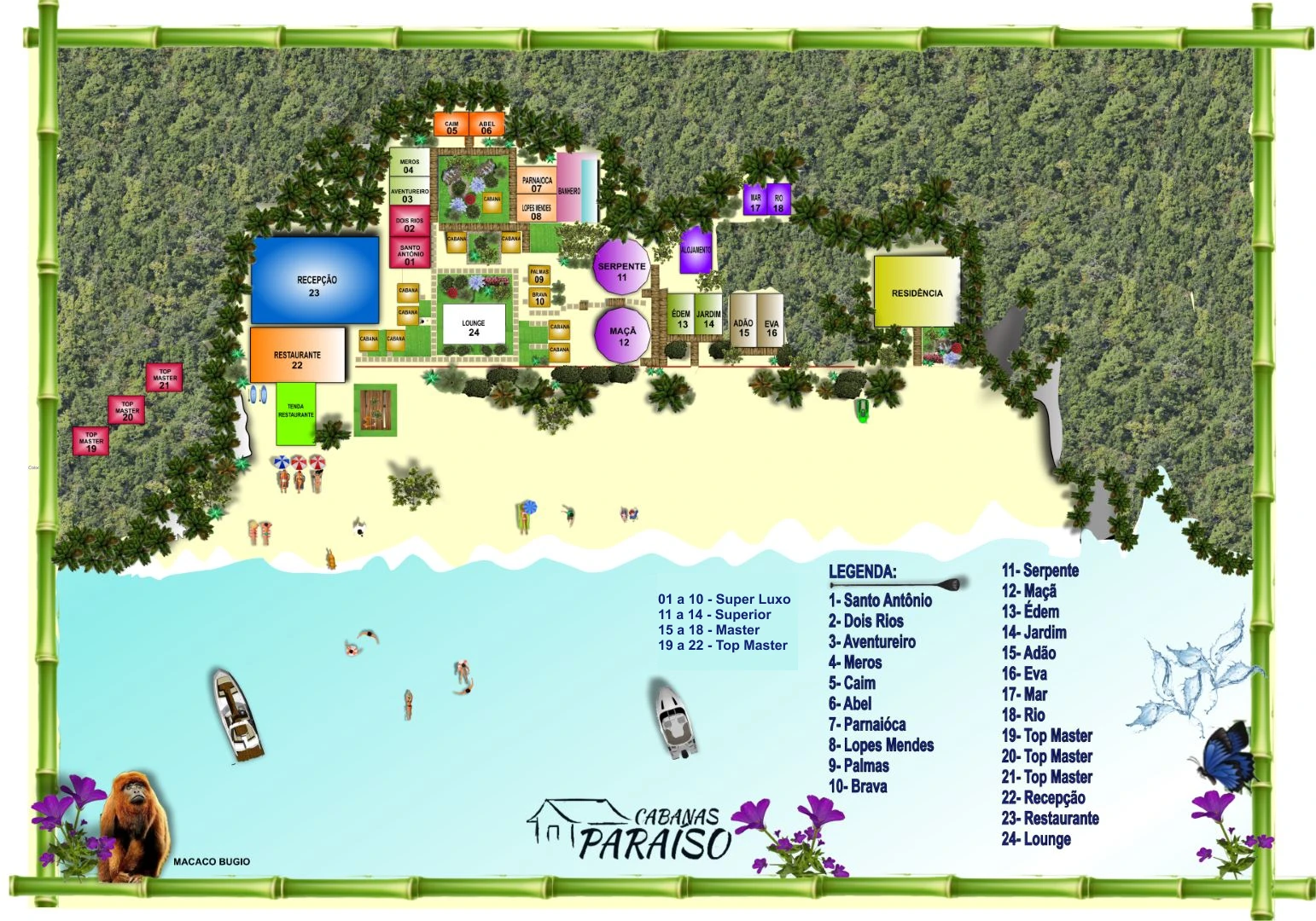 FECHAR Restaurante Recepção Tenda Lounge Top Master Top Master Top Master Santo Antônio Dois Rios Aventureiro Meros Caim Abel Parnaioca Lopes Mendes Serpente Maçã Eden Jardim Eva Mar Rio